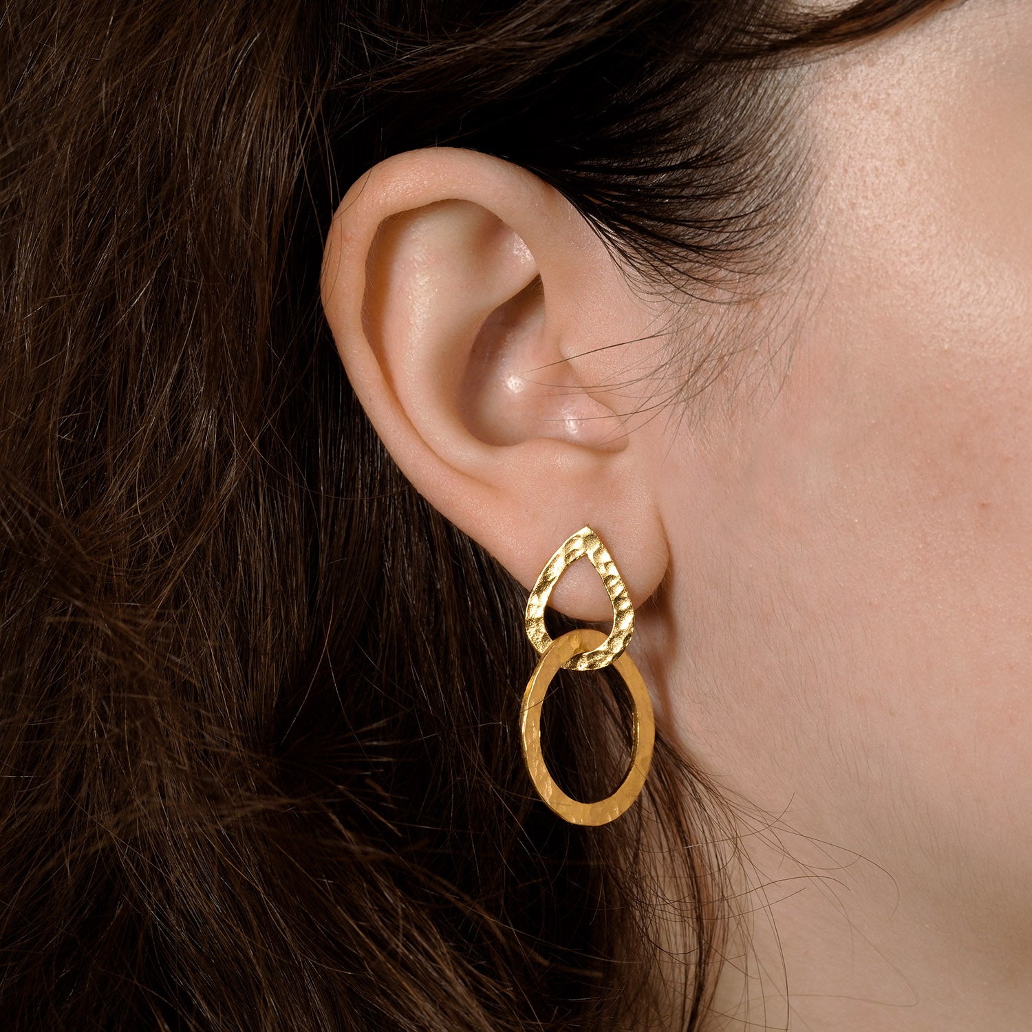Diese zweiteiligen, geometrisch inspirierten Ohrringe begeistern aus allen Blickwinkeln – nach vorne und zur Seite.